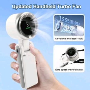 Stay cool anytime, anywhere with this powerful mini turbo fan featuring a foldable design, 5-speed airflow, and long-lasting rechargeable battery.